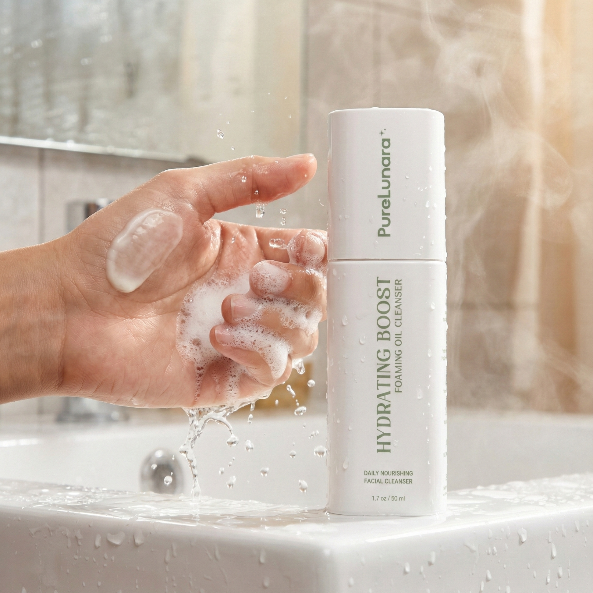 2. Transform: Massage until the texture turns from oil to a silky foam.
